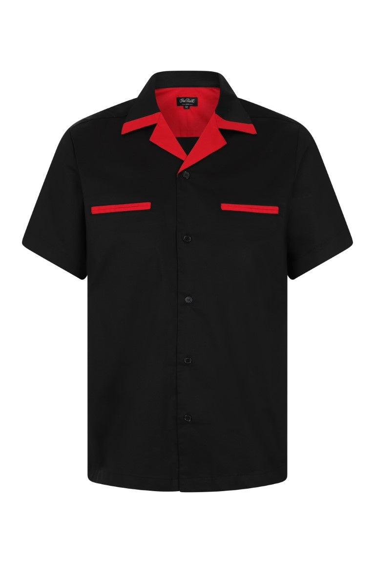 - Black vintage styled Bowling shirt with two front pipe pockets and short sleeves