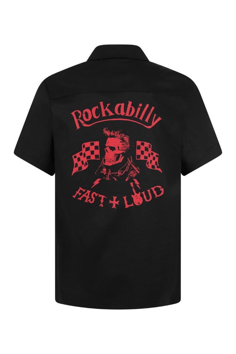 - Rockabily Fast + Loud skull head print on the back