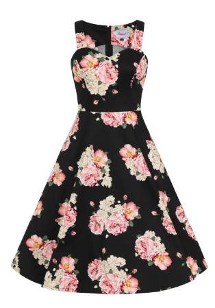 This stunning sleeveless floral Lady Jane dress is the perfect wardrobe addition to any lover of vintage inspired clothing. The flattering fit and flare cut will enhance all the right curves giving you an effortlessly stylish frock oozing glamour and class from the 50's. The lustrously smooth and glossy fabric adds to the opulent feel and combined with the two tone appearance of the floral and black panels ensure this dress becomes a firm favourite. Pair up with a cute cardigan or a sumptuous bolero depending on the occasion and the weather.