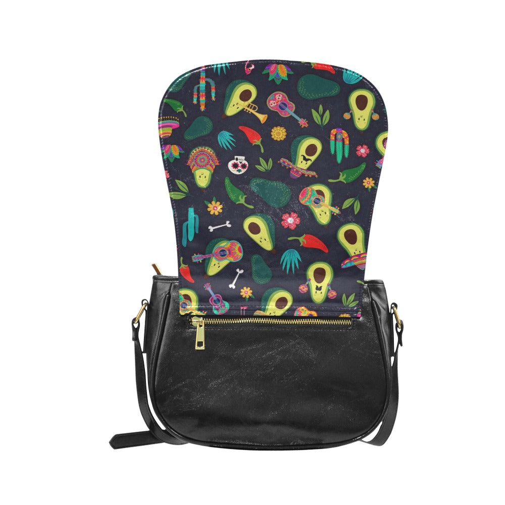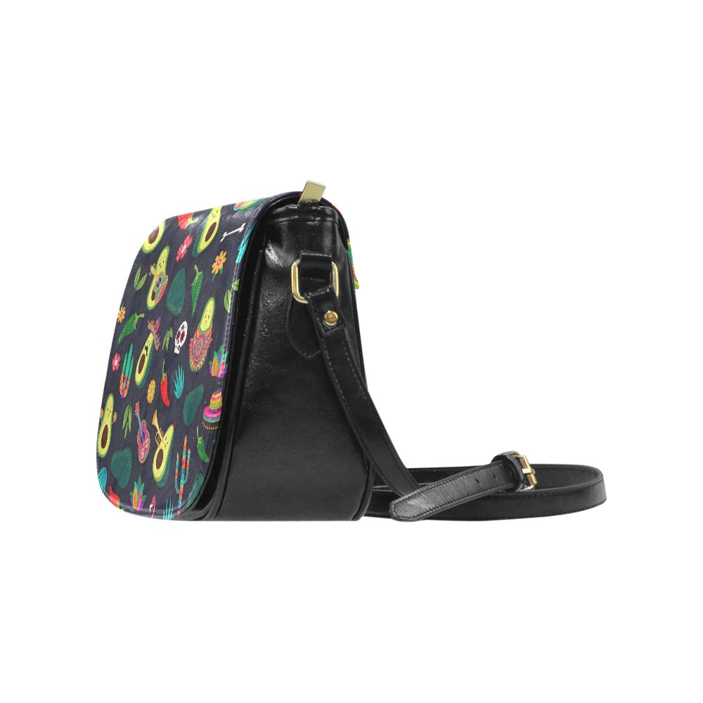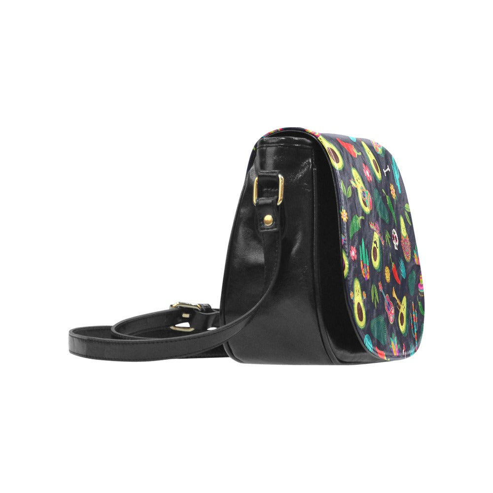 Classic Saddle Bag featuring our Miss Flamingo Fiesta Avocado print.