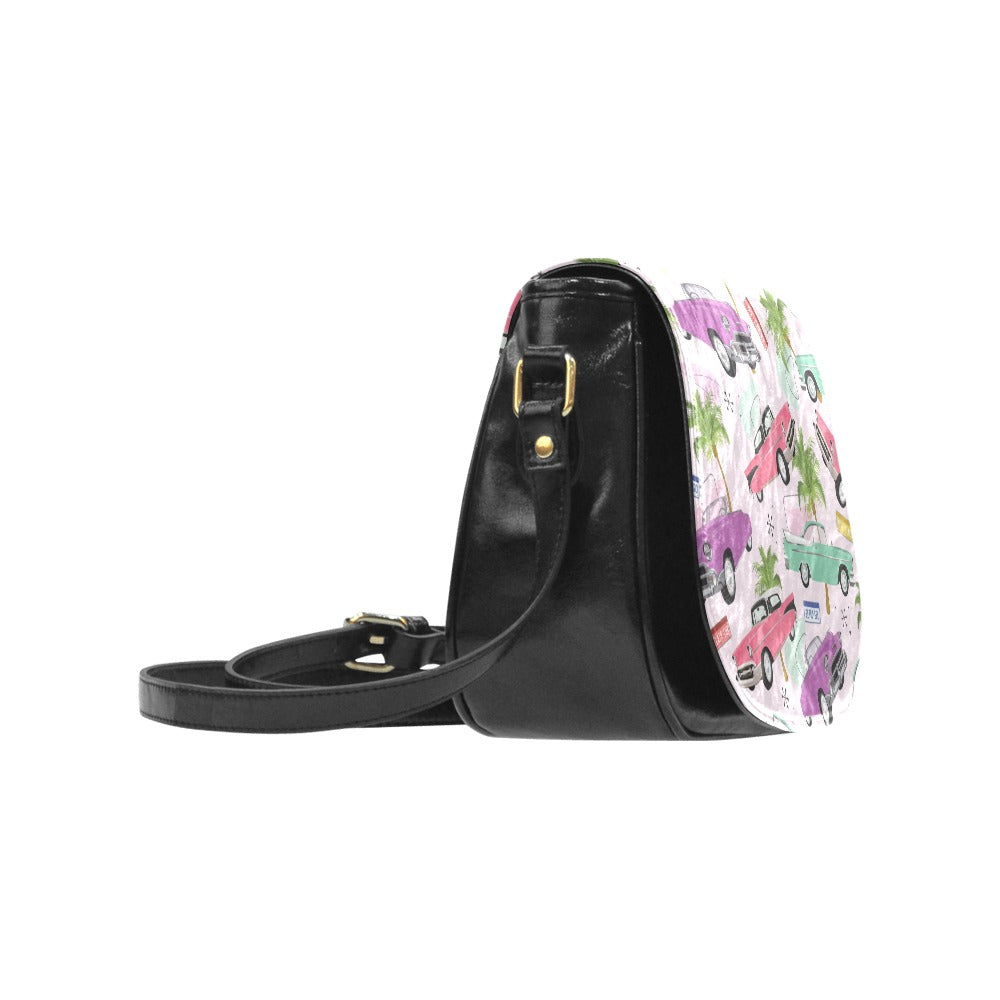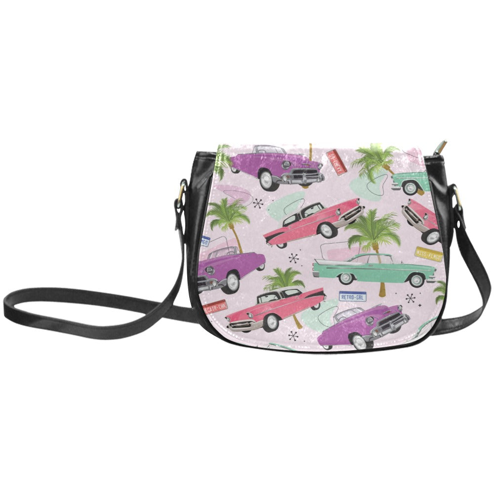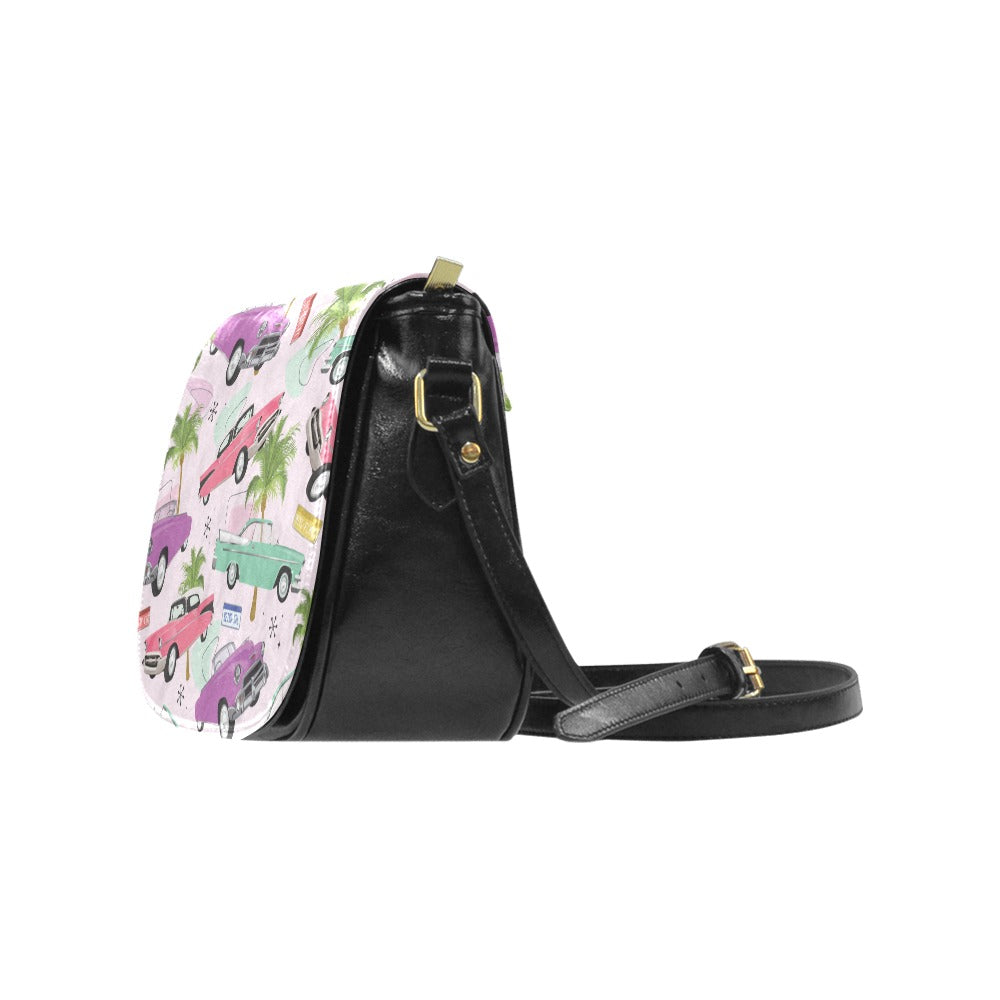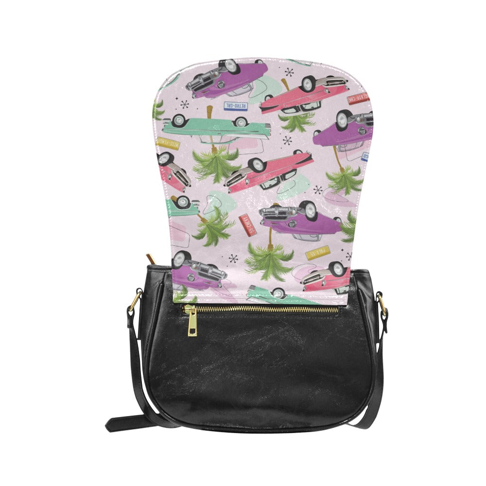 Classic Saddle Bag featuring our Miss Flamingo Pink Cadillac print.
