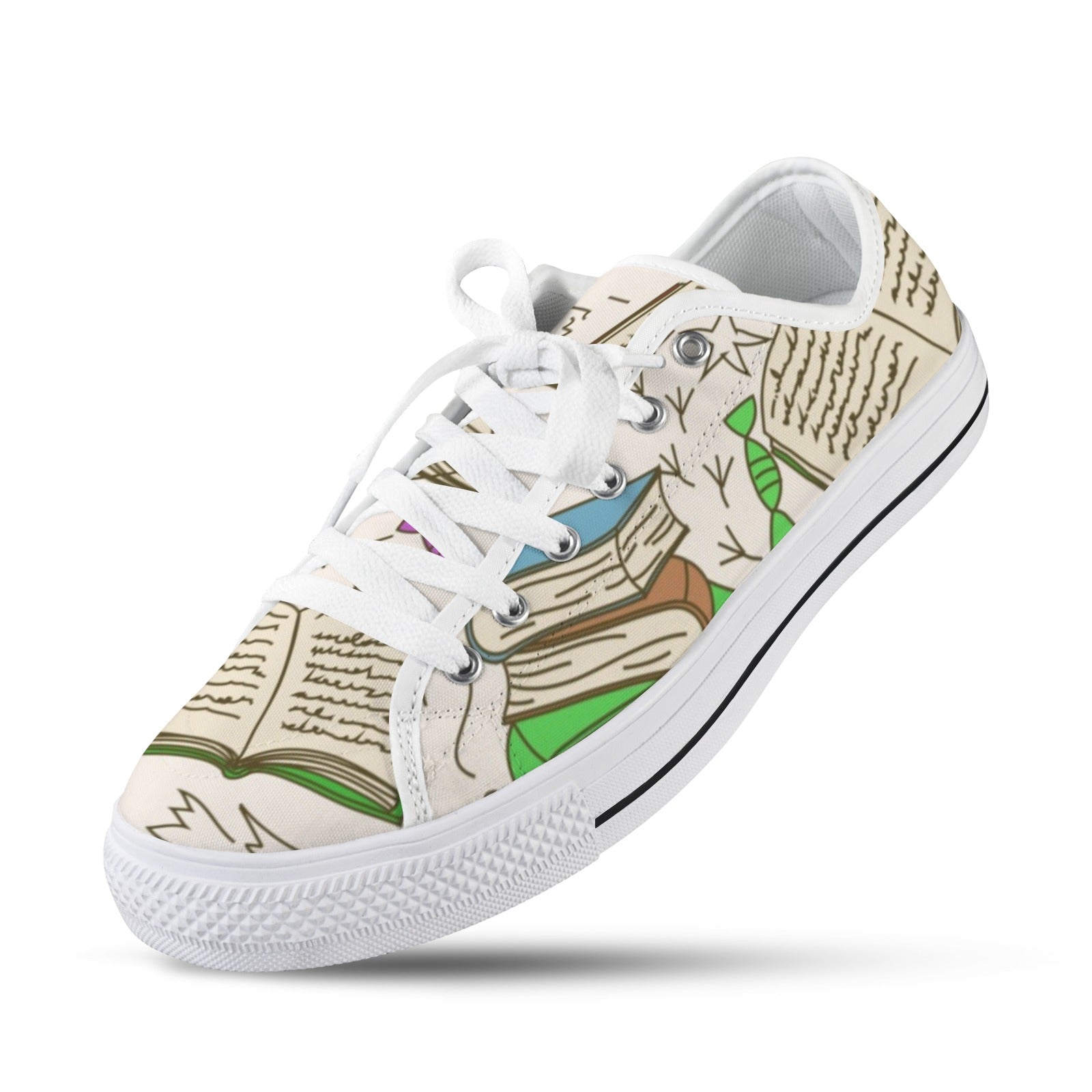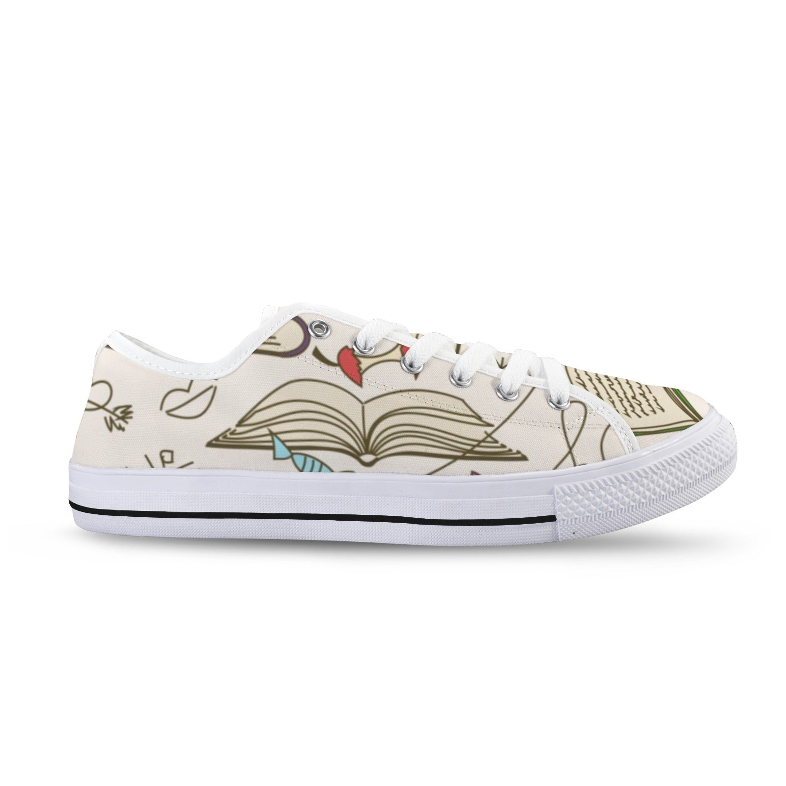 Custom Womens Low Top Sneakers Books And Scribbles