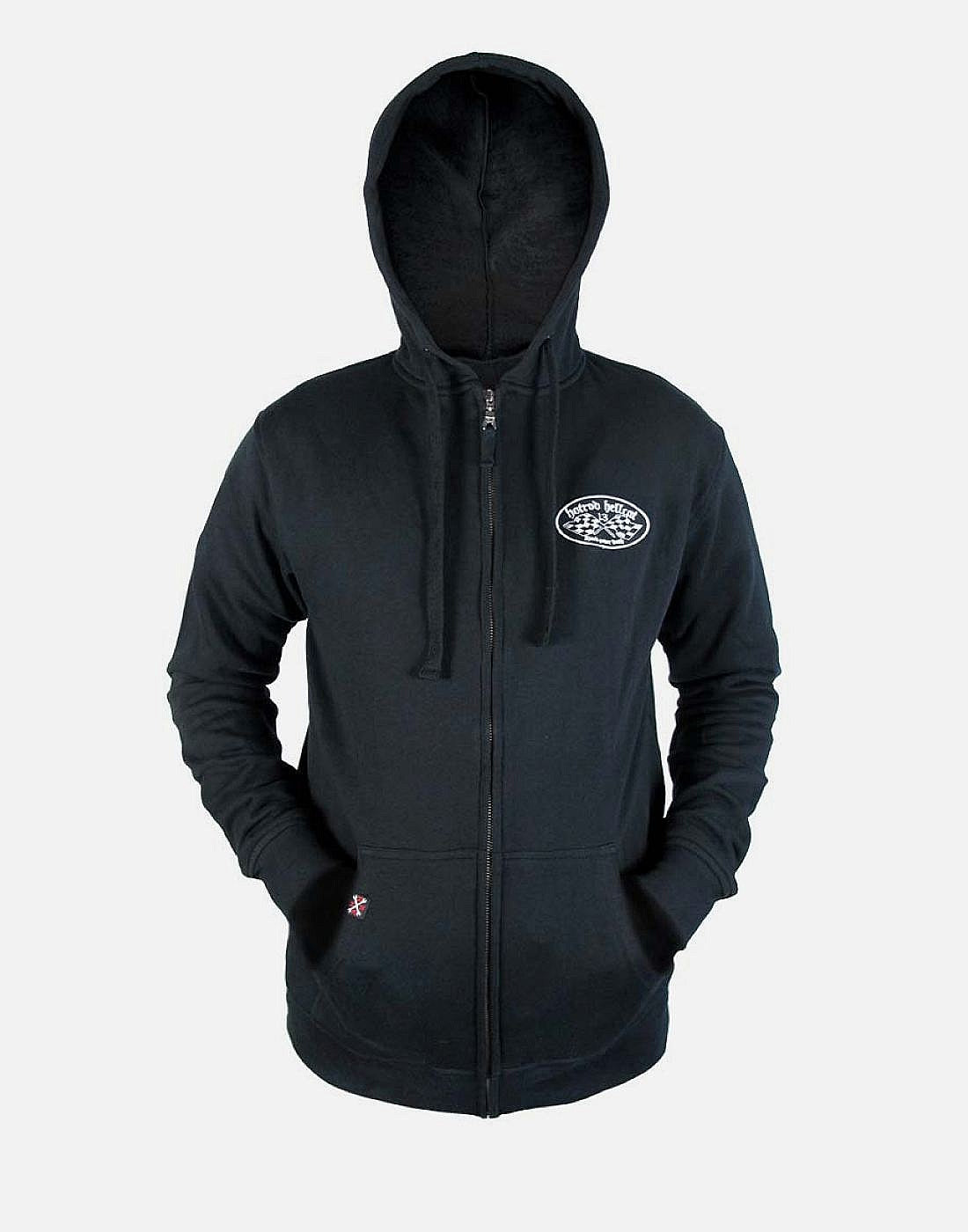 Men's zipper hoodie with kangaroo pocket and drawstring hood.