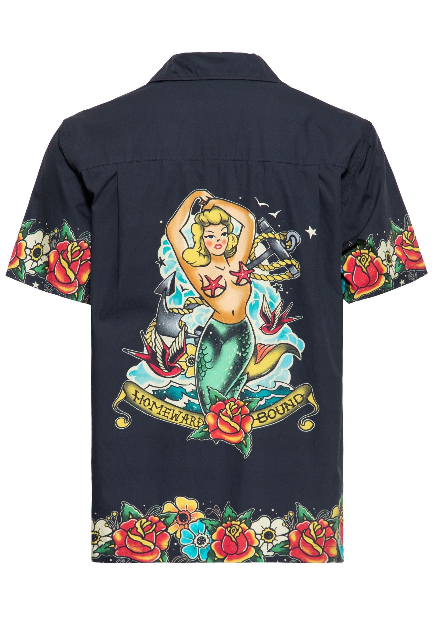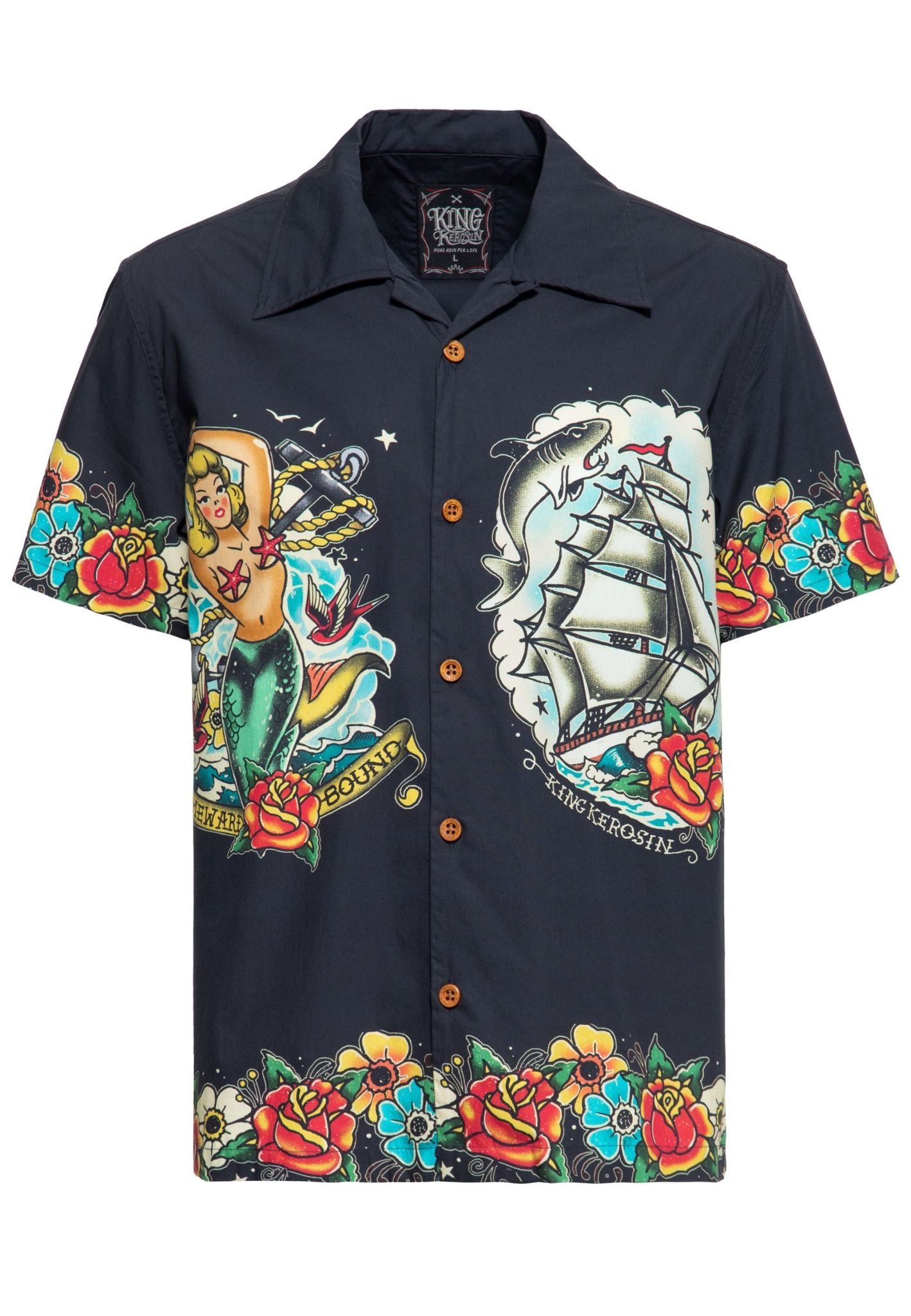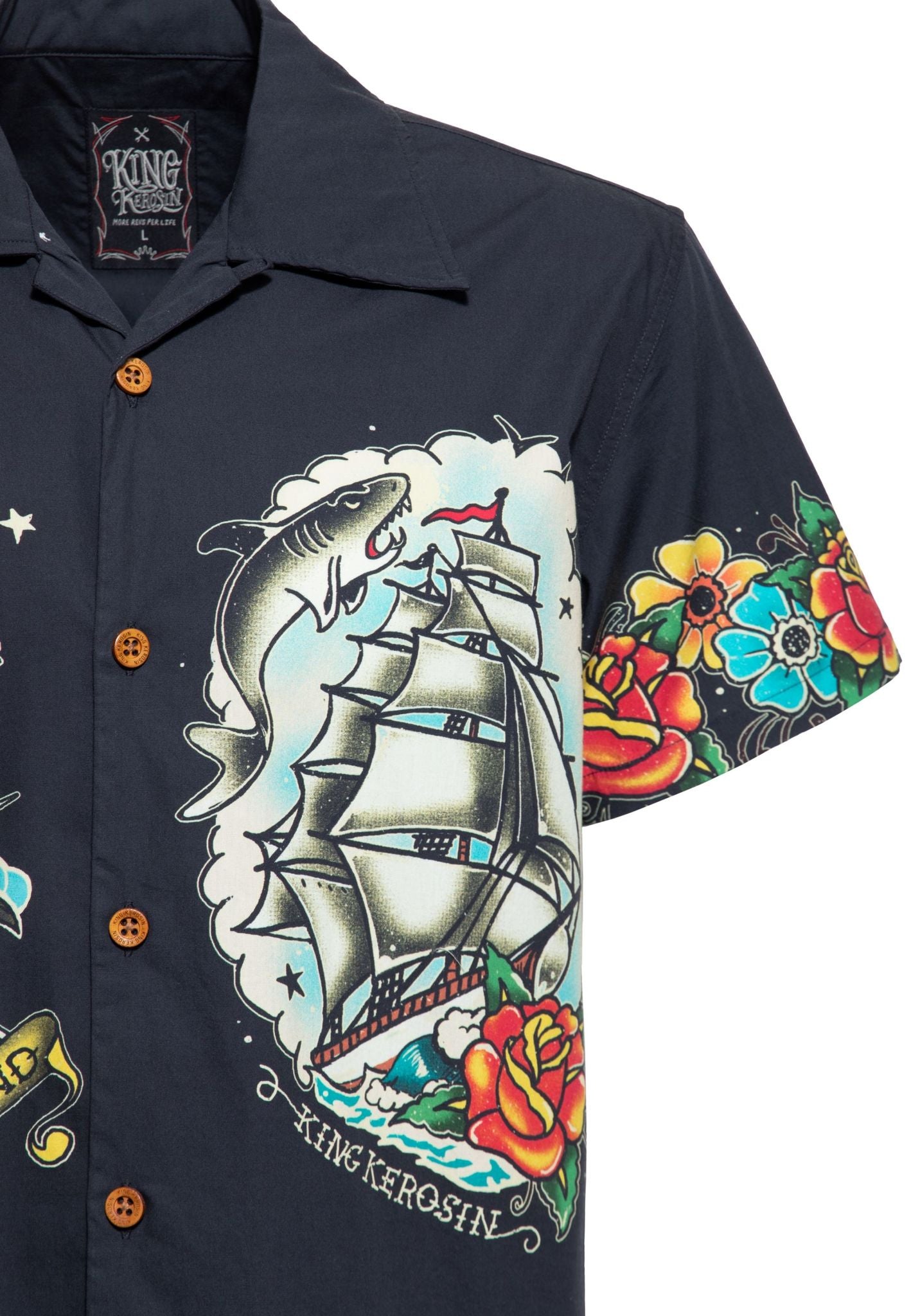 KING KEROSIN Hawaiian Short Sleeved Shirt Homeward Bound Black