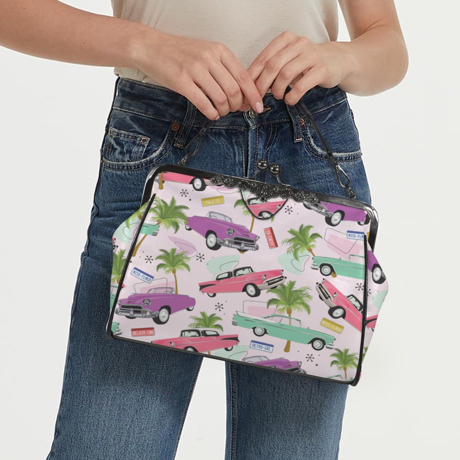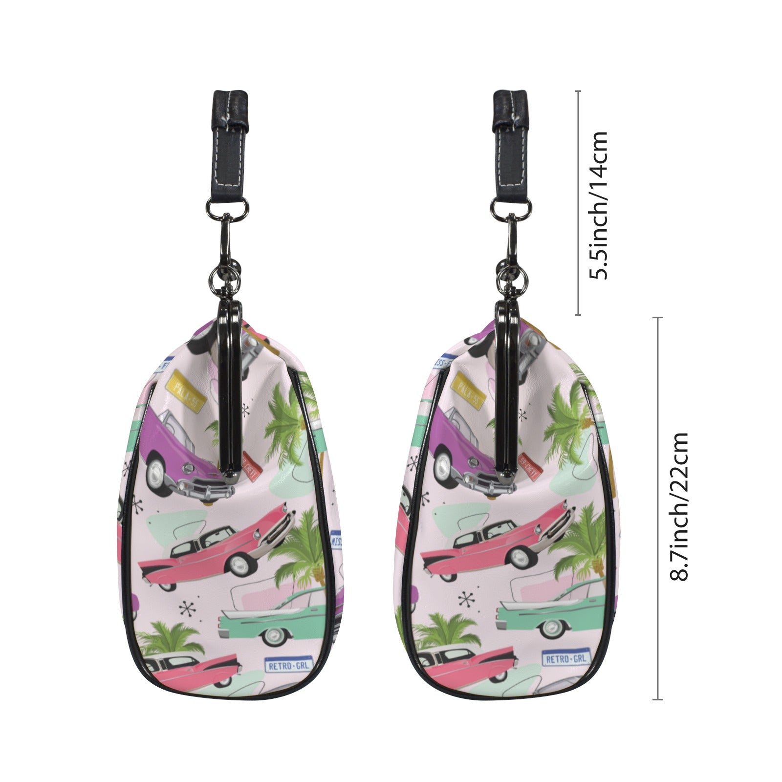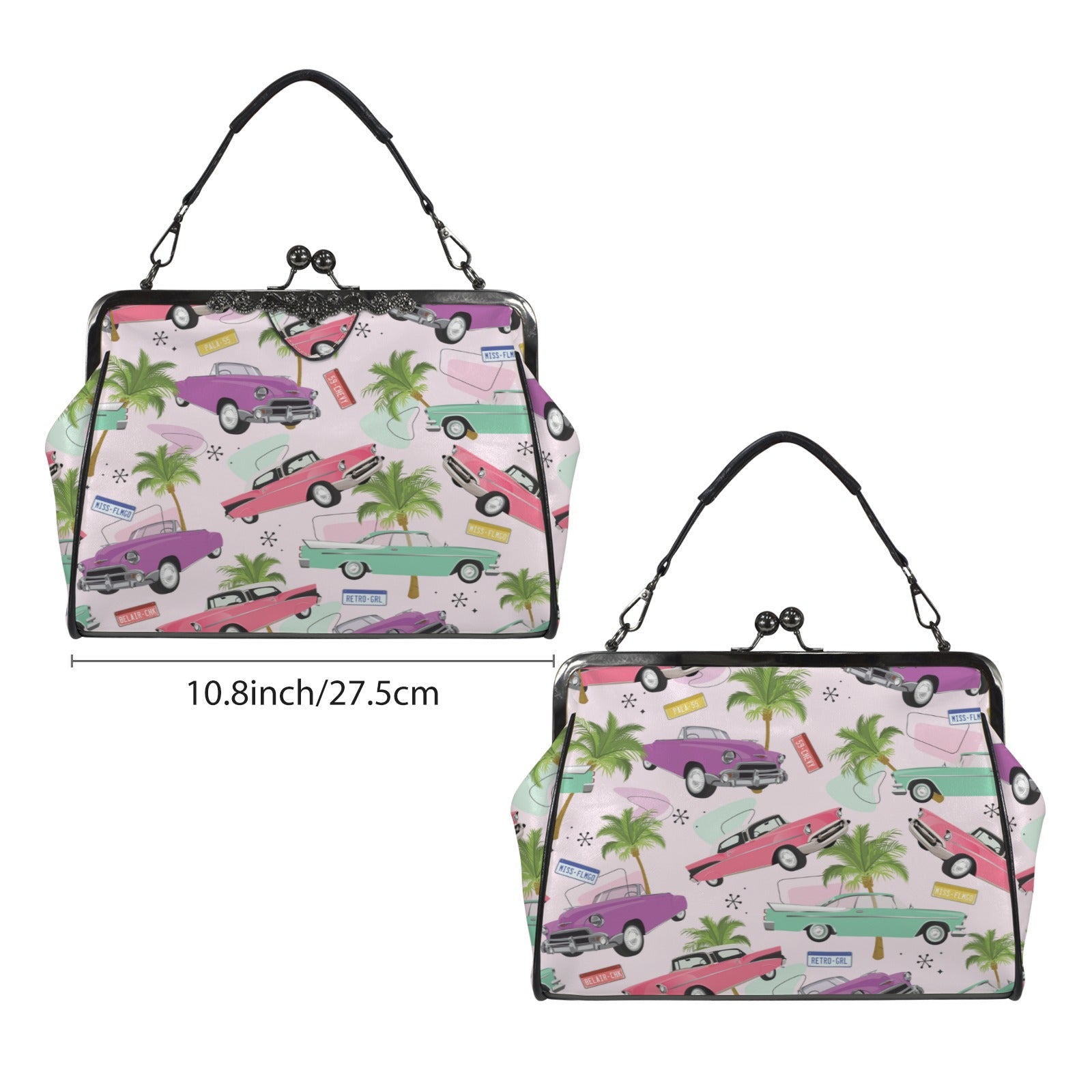 PU leather crossbody handbag featuring our Miss Flamingo Classic Cars print