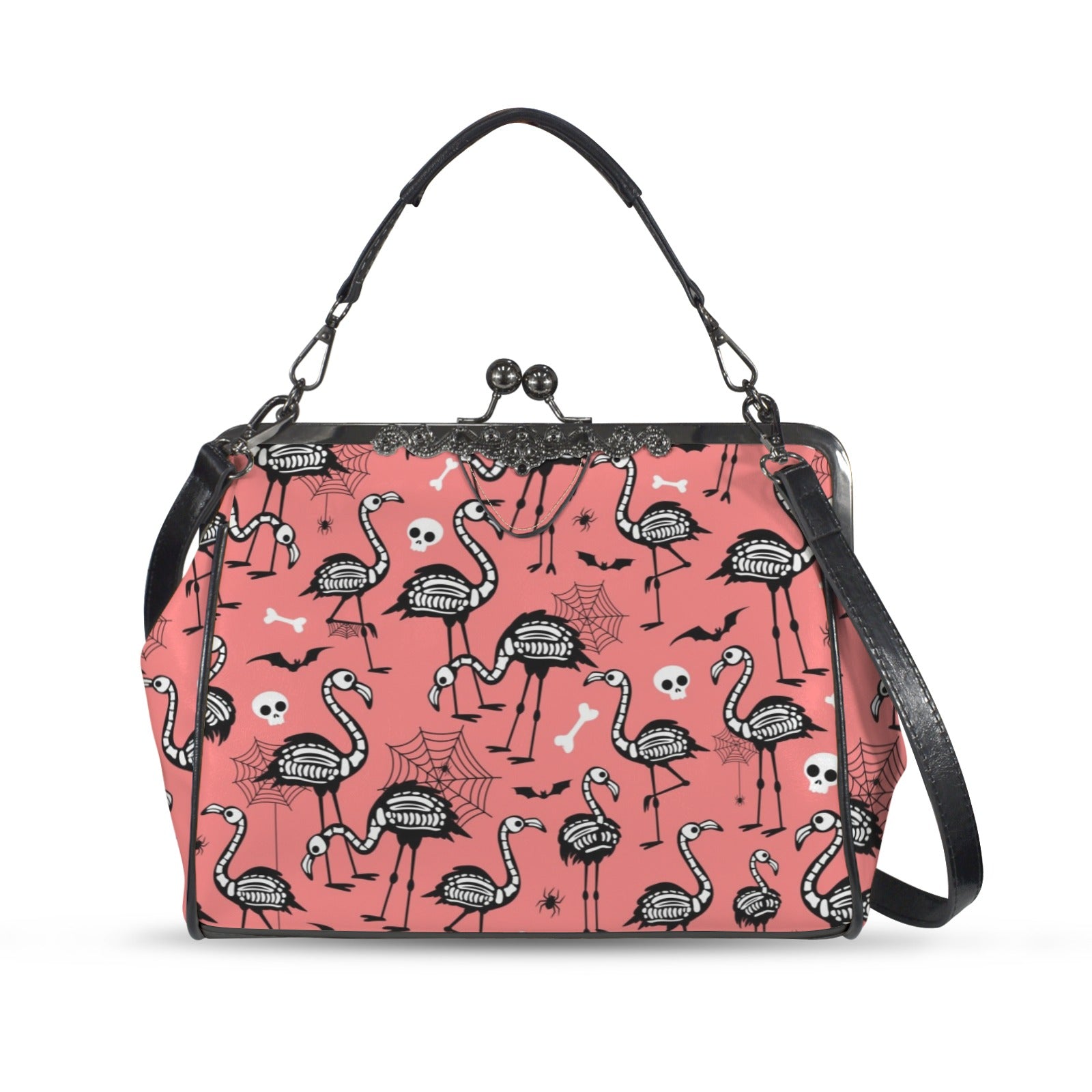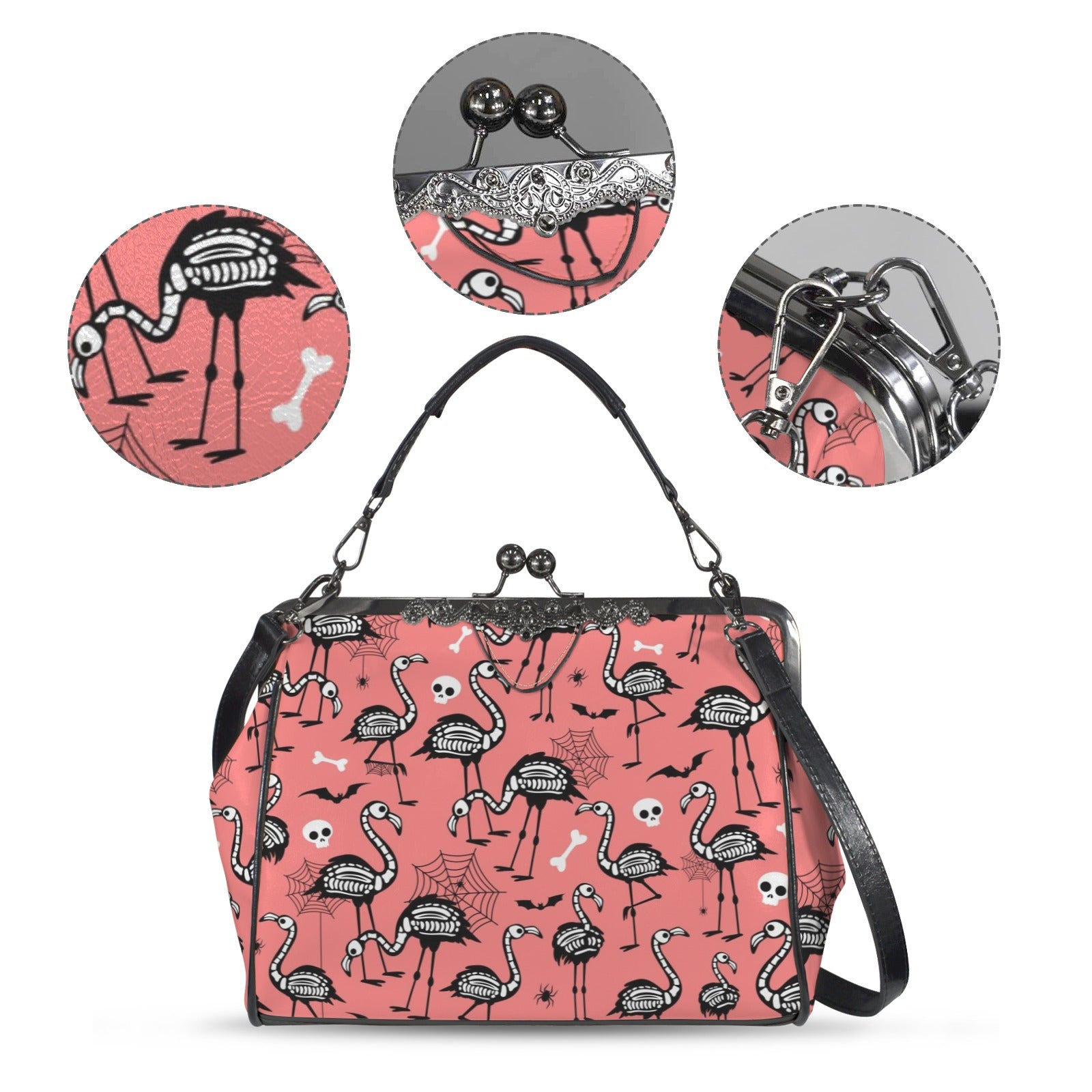 PU leather crossbody handbag featuring our Miss Flamingo Flamingo Muertos print