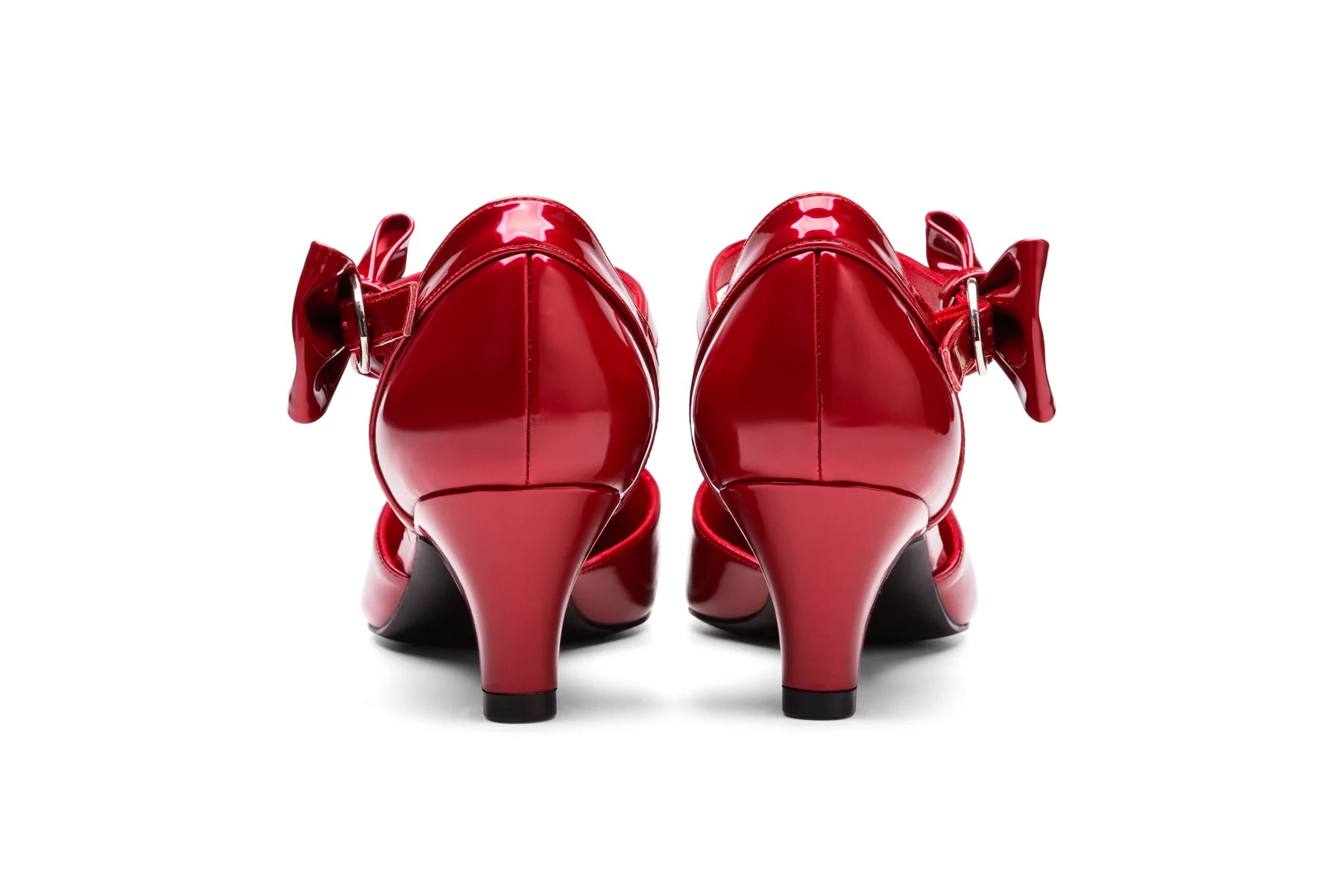 Rockabilly, retro, pinup or alt… whatever your style, every woman must have a pair of stunning, shimmery blood red shoes in her collection! Channel your inner Cherry girl and strut your red hot stuff! Featuring a supportive and beautifully adjustable heart-shaped pin buckle closure, removable and changeable bow accent, a 5cm kitten heel, and a soft rubber sole perfect for rock n roll dancing... or for a full day at the office!