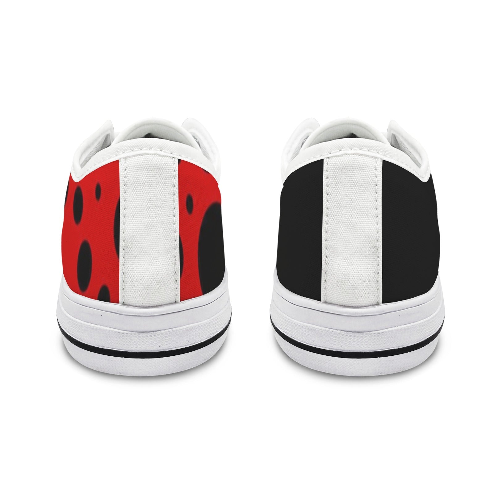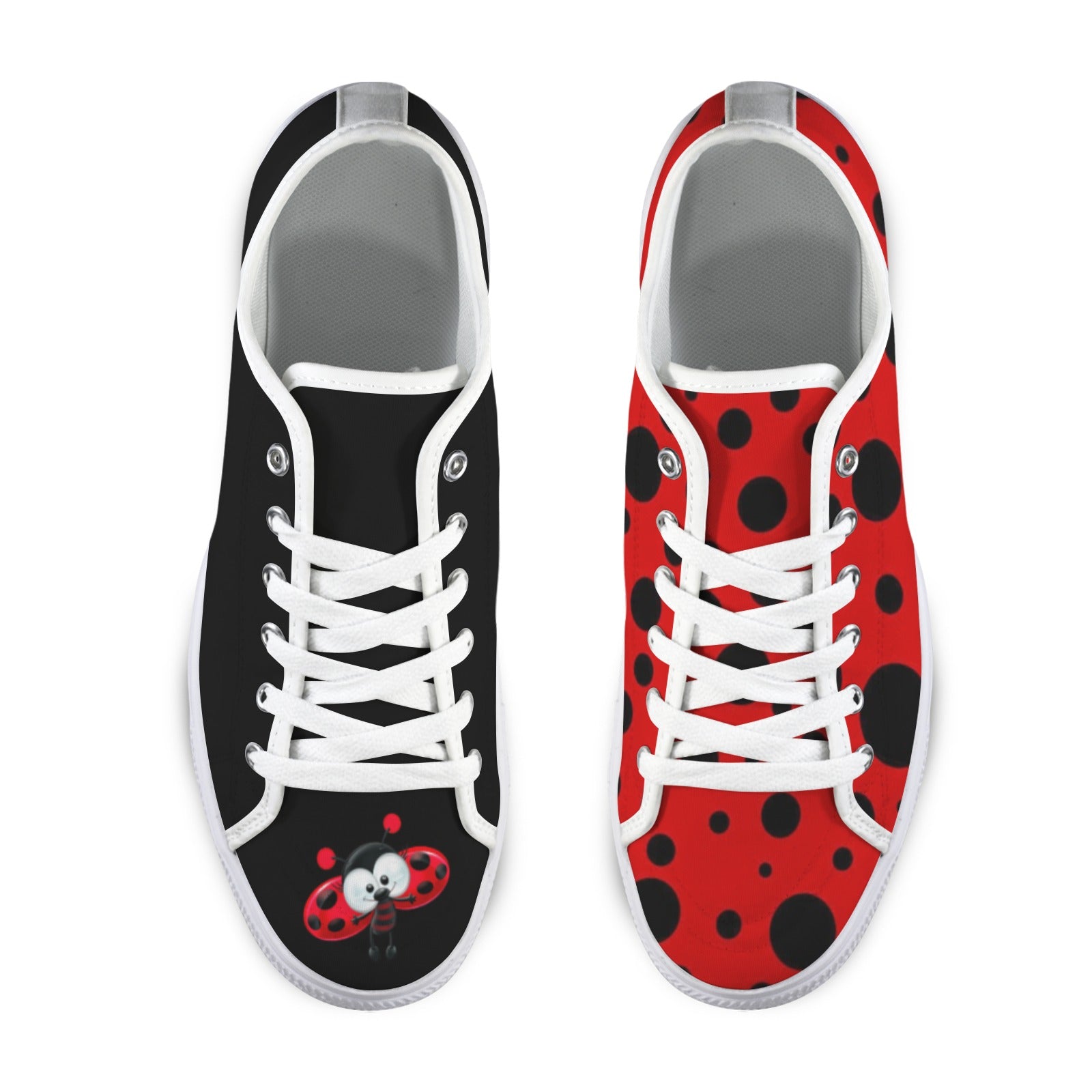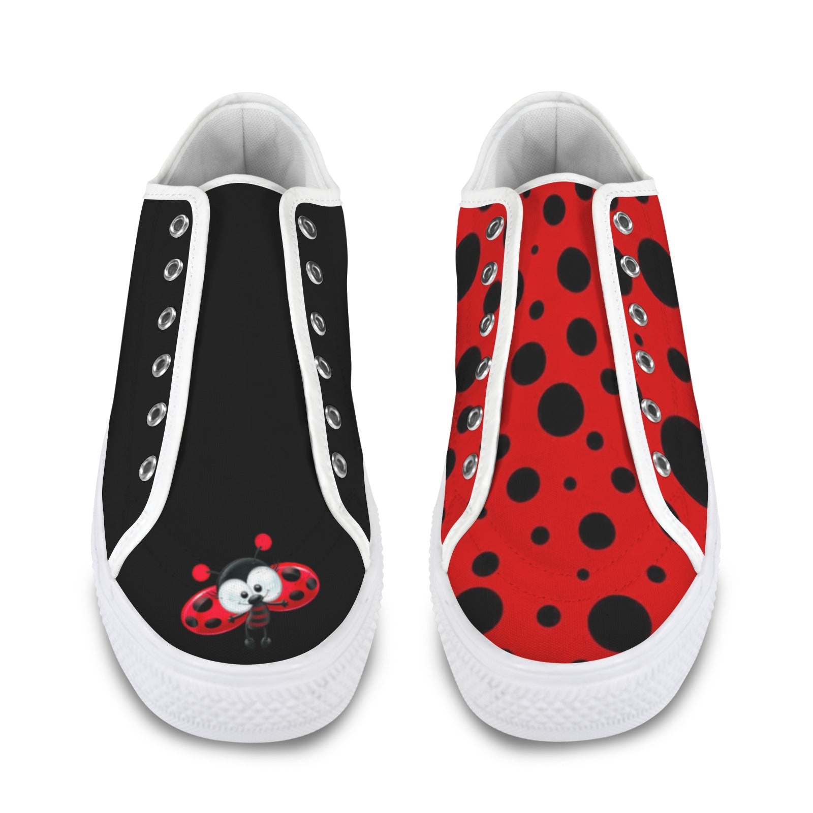Cute, mismatched ladybug sneakers. Custom made, please allow up to 30 days for delivery.