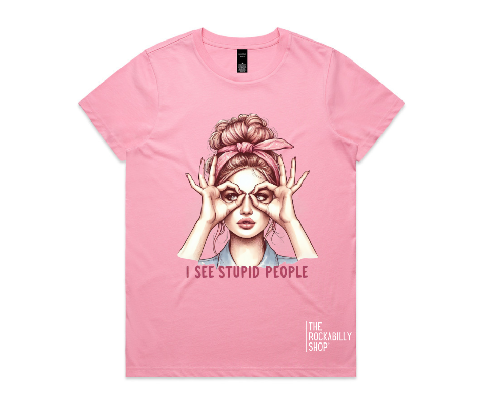 THE ROCKABILLY SHOP I See Stupid People Tee Bubblegum
