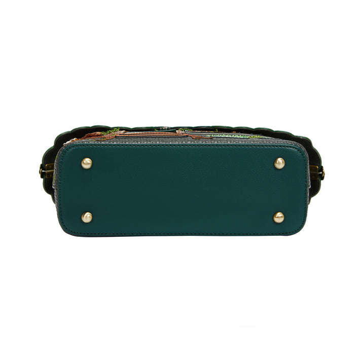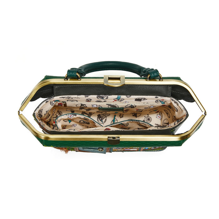 Grab your pitchforks—the witch hunt is back! The Witches Pantry Grab Bag introduces a new shape to the range, designed to carry all your daily essentials in spellbinding style. It features a detachable handle and strap, giving you the flexibility to wear it your way. Base studs keep it stable on any surface—but if it starts to levitate, you might want to run! Shaped like a witch’s house, this vegan leather shopfront handbag boasts a magical design, with leafy roof windows, a charming pantry scene, and a mysterious door you may have opened once before. Dare to open it again?