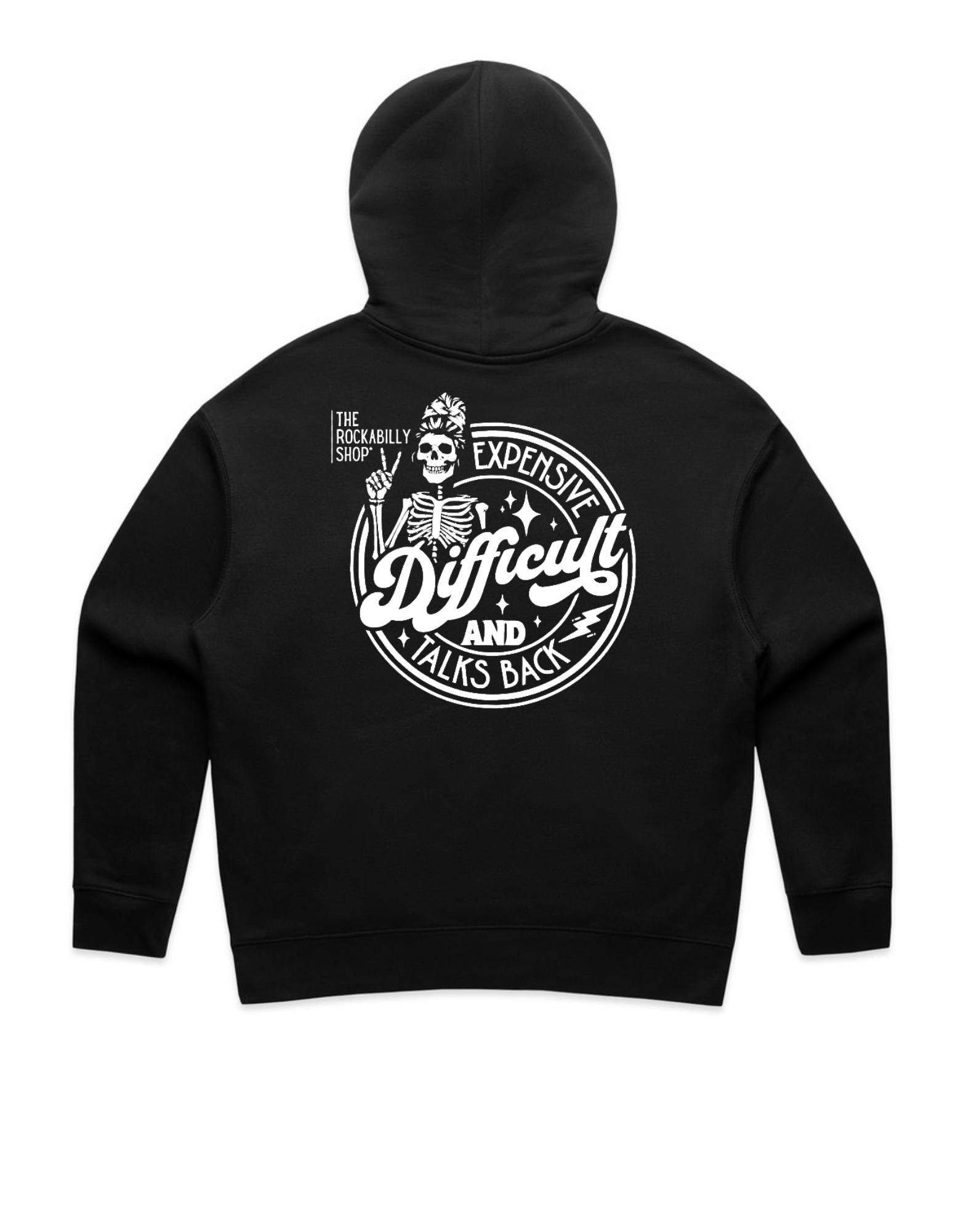 Features include a pullover style, drop shoulder, kangaroo pocket, and ribbed sleeve cuffs, complemented by a self-fabric lined hood and tear-out label for a minimalist appeal.