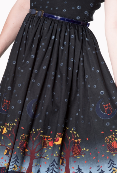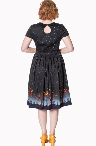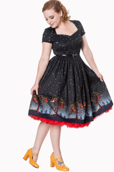 Inspired by a love of nature the Lone Traveller swing dress features a full skirt depicting a woodland scene ideal for someone with a love for the outside. With a sweetheart neckline short sleeves and full skirt the Lone Traveller is ideal for all seasons teamed with sandals and a sun hat or ankle boots tights and a thick cardigan.- Fit and flare style dress- Capped sleeves- Sweetheart neckline- Gathered material around the waist- Below the knee lengthApproximate Total Length: 103cmFabric: Dress: Cotton ElastaneWashing Advice: See inner garment label
