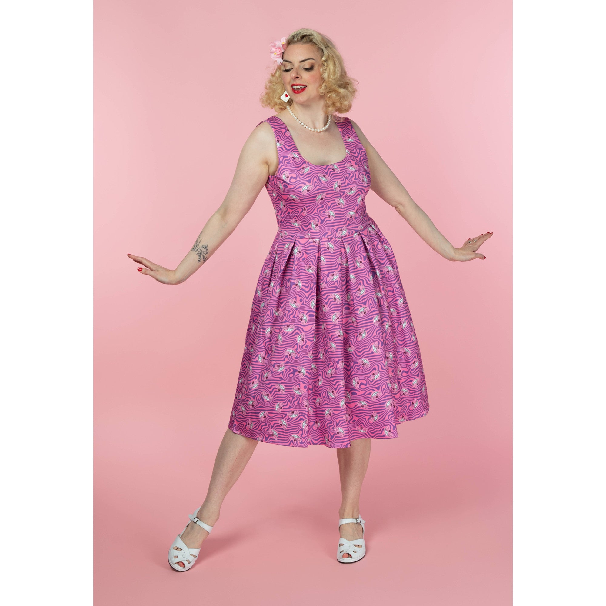 This most-loved Amanda style is an essential for your wardrobe! This stunning dress features a figure-hugging bodice and a beautifully flared 1950s-inspired box-pleated skirt, a pretty scoop neckline, a concealed zip at the back and two hidden pockets. Made from a very soft fabric that offers generous stretch, this dress provides both a flattering silhouette and utmost comfort for you.