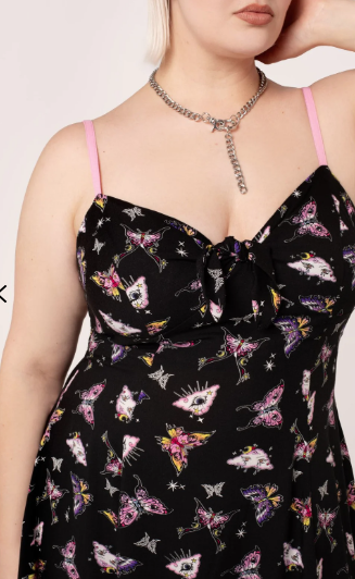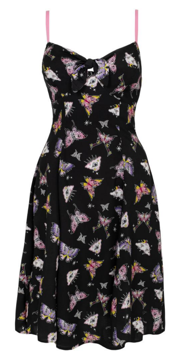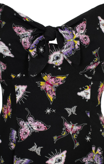 - Black base with pink and purple sparkley butterflies, clouds and eyes