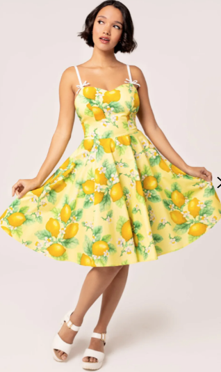 - Fit advice: Fabric has stretch, stick to sizing advised on size guide for bust & waist, hip measurement not needed as skirt is flared