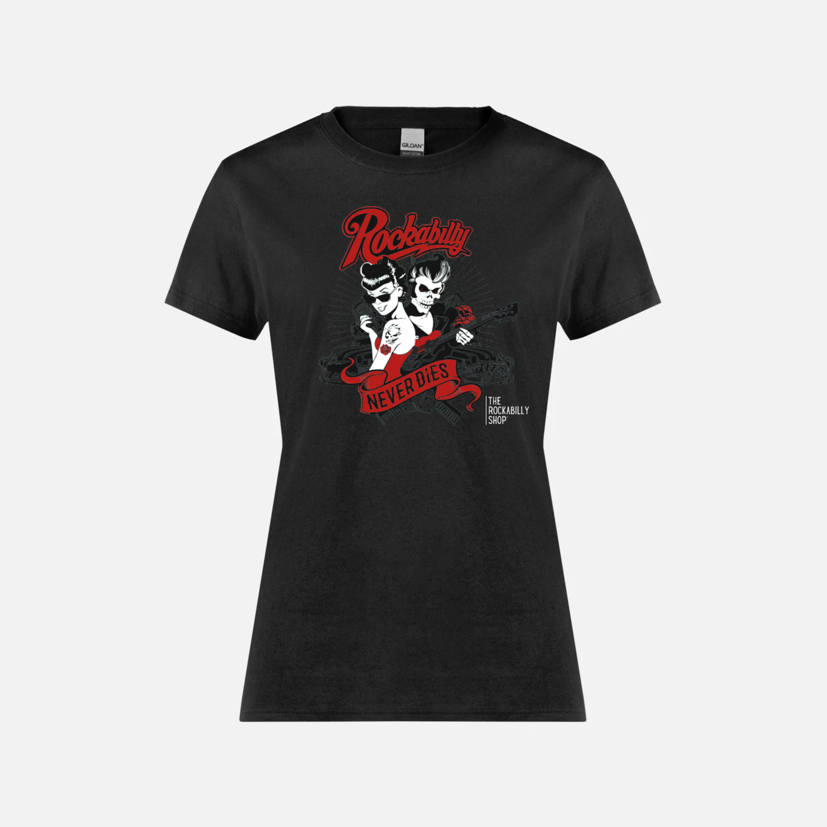 THE ROCKABILLY SHOP Rockabilly Never Dies Womans Tee Black