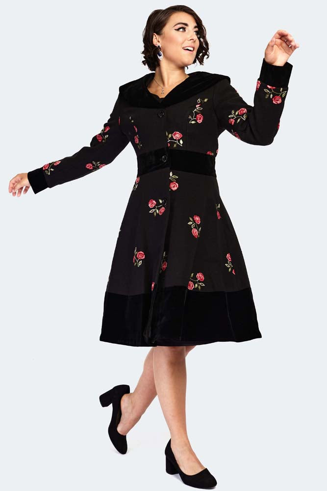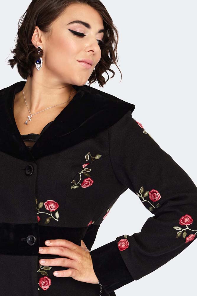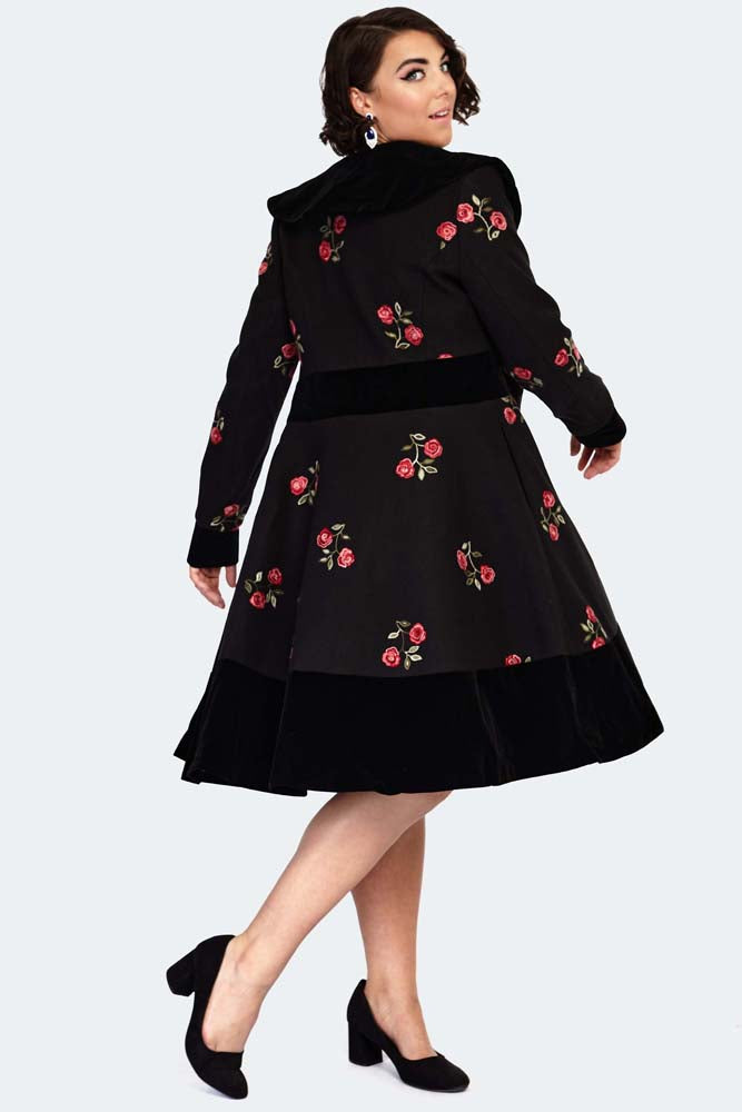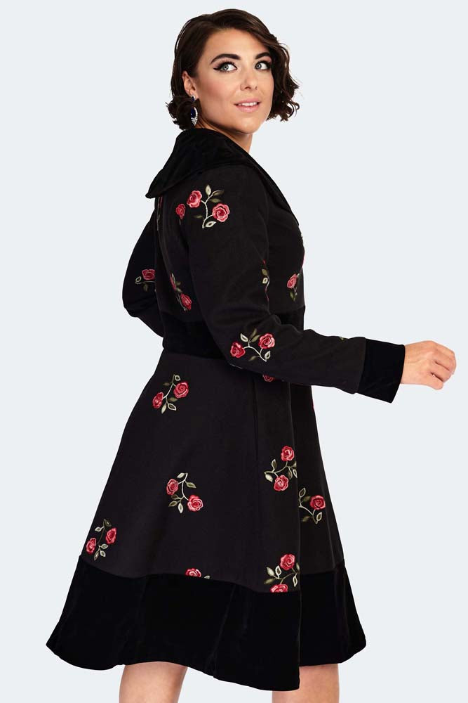 The Floral flared floral coat is gorgeously woven with the details of embroidered flowers.