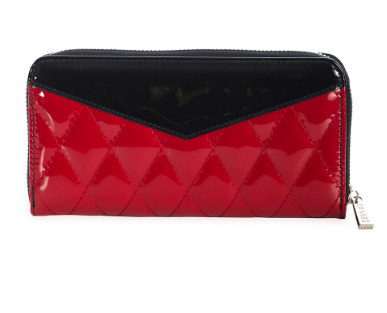 SHIMMER LAQUER ROCKABILLY QUILTED PURSE FAUX LEATHER TEXTILE LINING