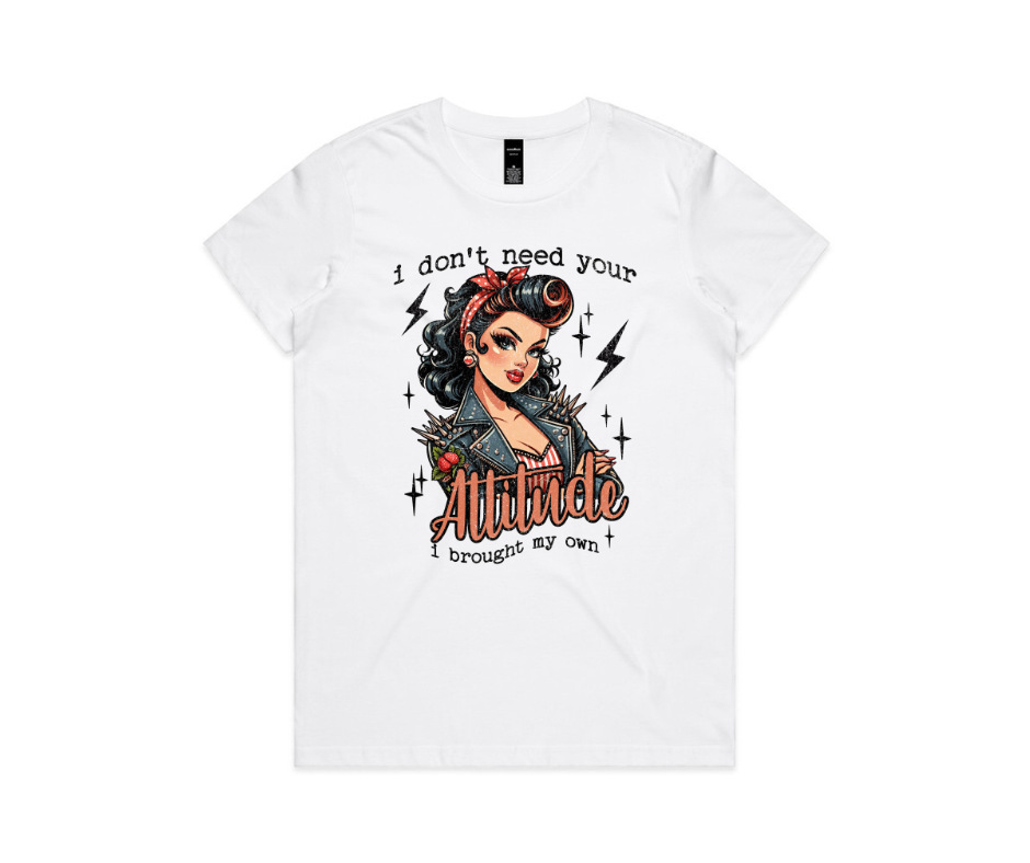 THE ROCKABILLY SHOP I Don't Need Your Attitude Vintage Tee White