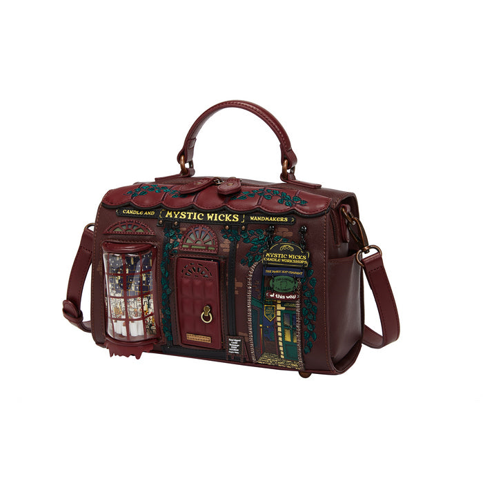Charming and utterly captivating, the Mystic Wicks Candle and Wandmakers Hollis Bag is your ideal autumn/winter accessory. Crafted from burgundy vegan leather with copper hardware, it features a 3D window, opening door, and striking magical décor. It’s also wonderfully practical, with room for all your essentials and a comfortable adjustable strap. With this bag by your side, you’ll never step out without a touch of magic.
